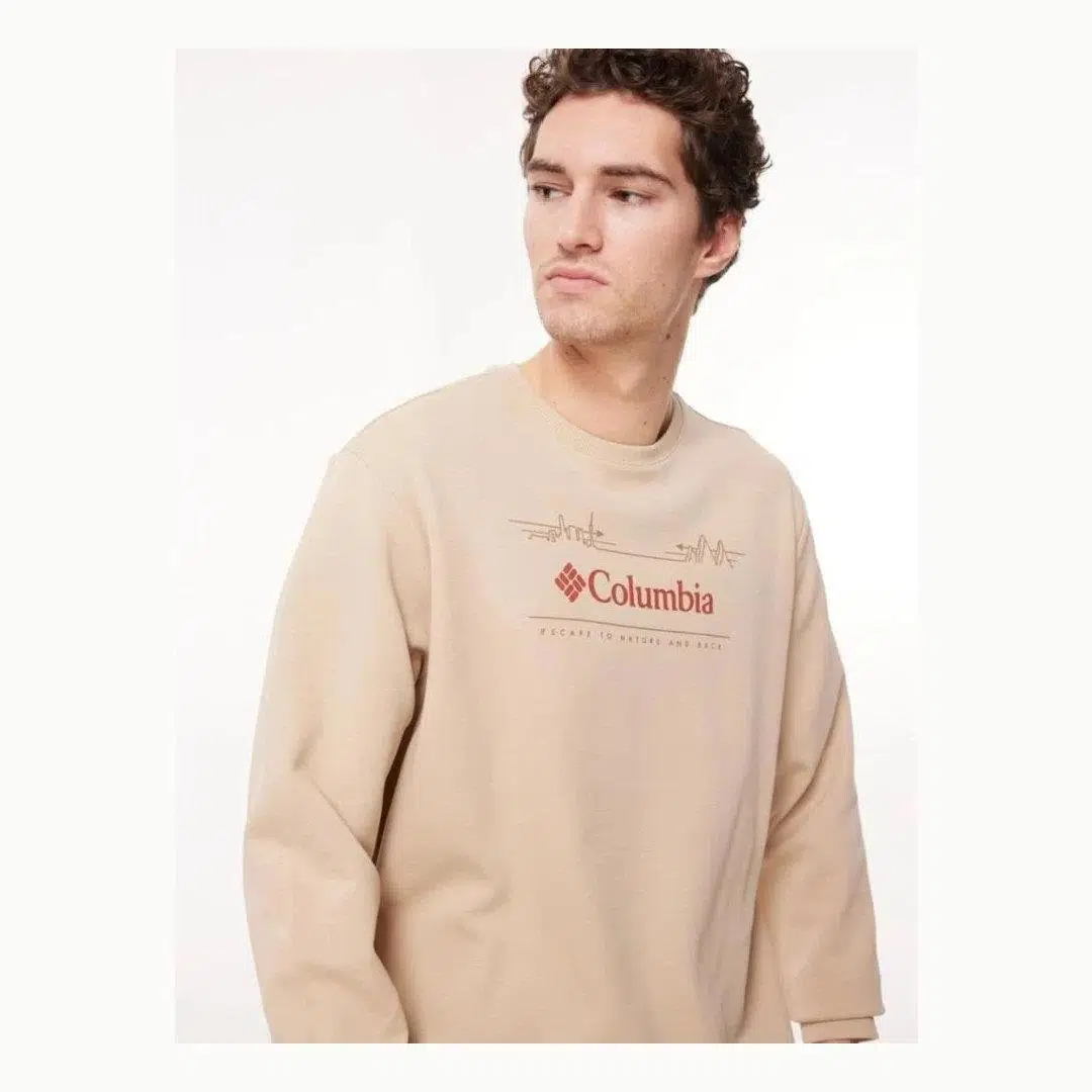 Columbia'nın **"CSC M Nature And Back Crew"** erkek ekru sweatshirt modeli, günlük hayatta konfor ve şıklığı bir araya getiren özelliklere sahiptir.